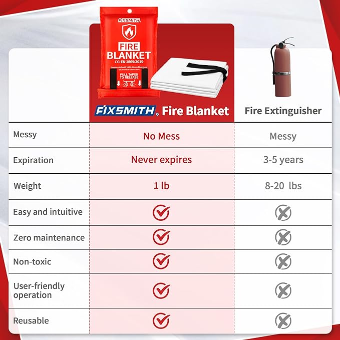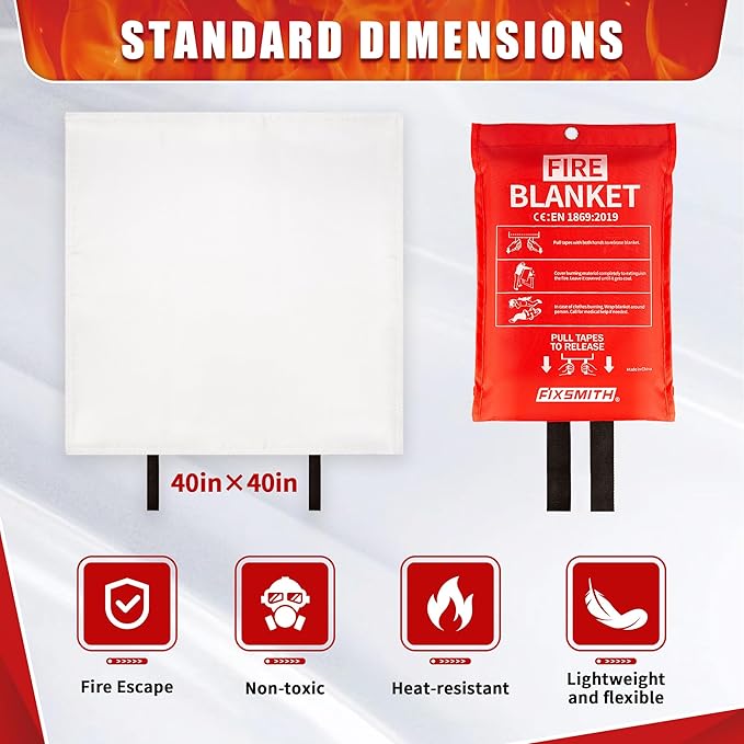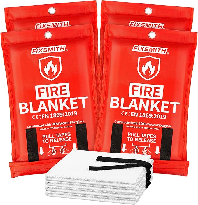 FIXSMITH Fire Blanket for Home and Kitchen, Emergency Fire Blanket-4 Pack, Flame Suppression Fiberglass Fire Blankets for House Camping Car Office Warehouse Emergency Survival Safety - 40 in x 40 in