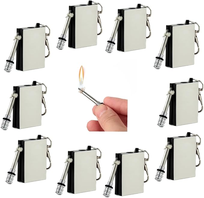 10 Pcs of Emergency Survival Camping Fire Starter Set, Forever Lighter, Flint Metal Match, Waterproof Keychain Permanent Match, Unlimited Waterproof Stick