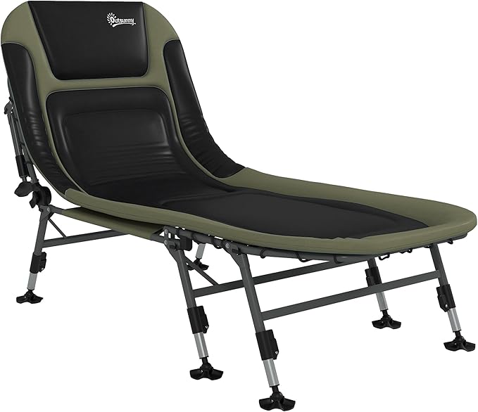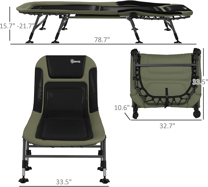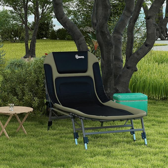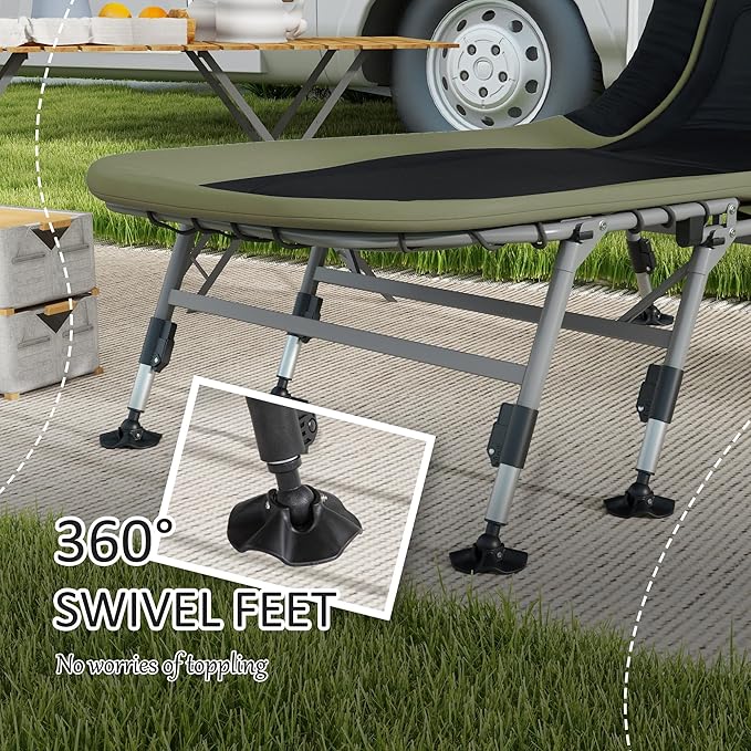 Outsunny Camping Cot for Adults, Folding Bed with Soft Padded Cushions & Headrest, 180° Adjustable Reclining Lounger, Heavy Duty and Portable with a 400 lbs. Capacity, Dark Green