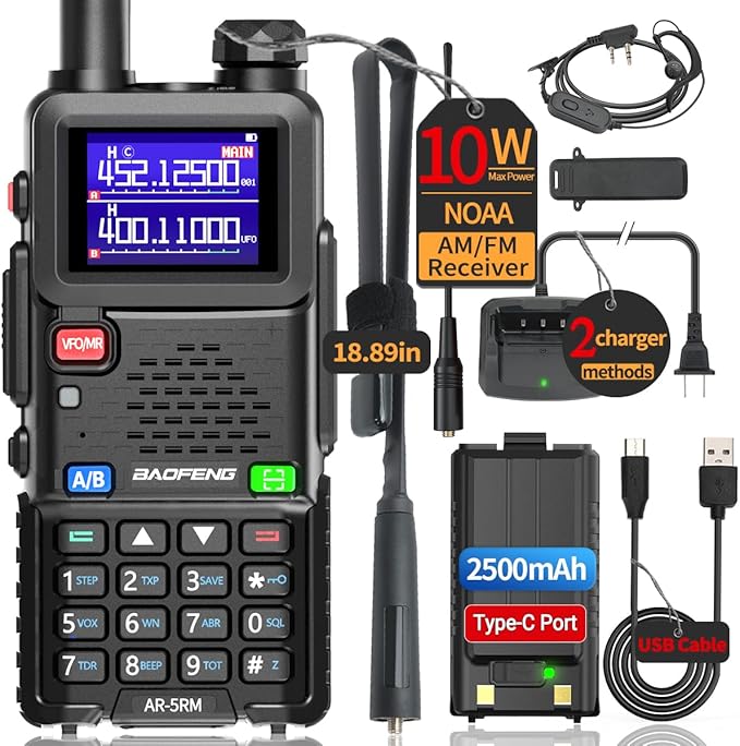 BAOFENG Radio 5RM 10W Ham Radio Long Range (Upgrade of UV-5R) AR-5RM Two Way Radio NOAA Weather Receiver Rechargeable Walkie Talkies UV5R Copy Frequency 999CH With USB Charging 18.89" Tactical Antenna
