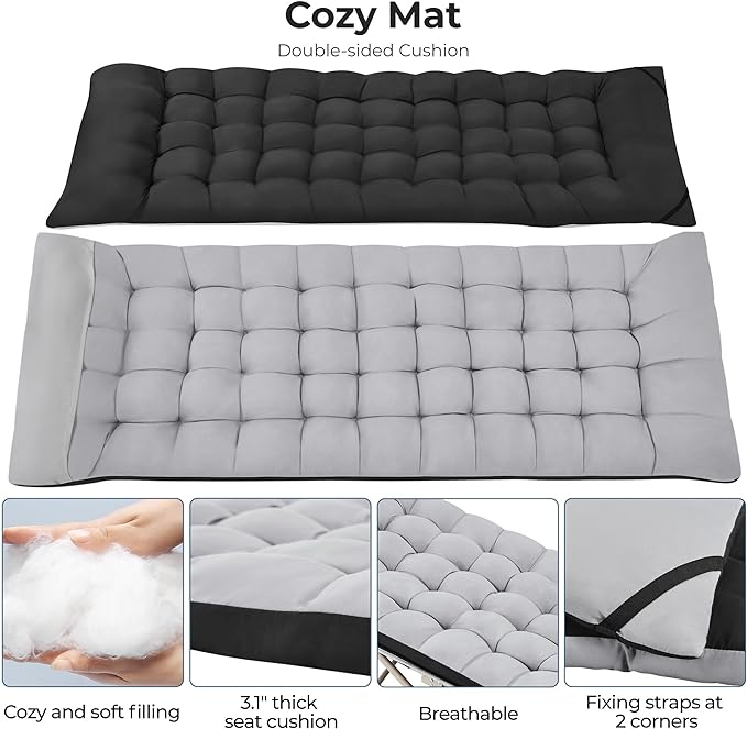 - Come with Side Bags: Two storage bags are provided on the two sides of this bed to keep your hat, sunglasses, phone, headset, water bottle, magazine, etc. A small detail saves you from the trouble of getting an extra table for your items or nowhere to keep your belongings