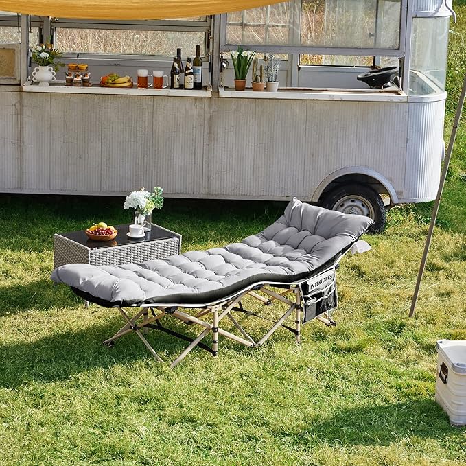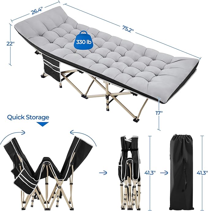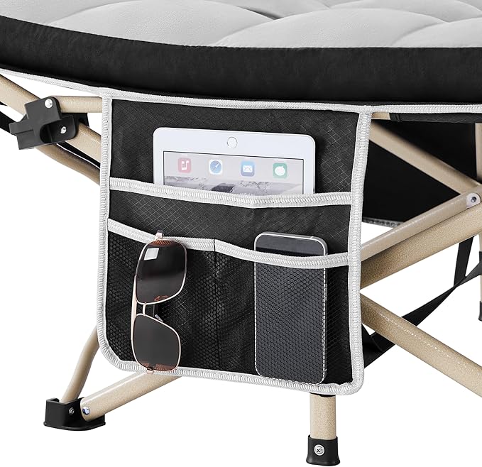 - Comfort-upgraded Camping Cot: This upgraded outdoor cot comes with an 8 cm/ 3.1" thick soft mat with a 90g Polyester cover and premium filling. To prevent the uneven distribution of the filling after using it for a while, outside the mat is sewn with thread vertically and horizontally, making the filling fixed in the specific area