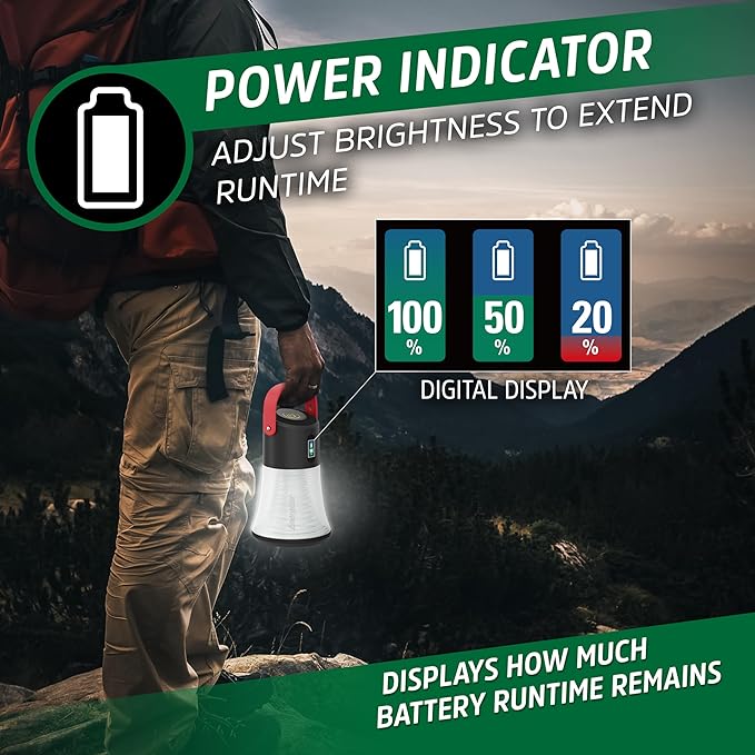 - IDEAL CAMPING LANTERN: Energizer X1200 Rechargeable LED Lantern has an easy-to-use digital power indicator that lets you clearly see how many hours of light you have left