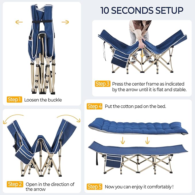 - Solid & Stable: Highly wear-resistant fabric mixed with a robust metal frame in super solid multiple X-shape structures after unfolding and anti-slip footpads, this portable outdoor bed enjoys trust-worthy solidity and stability