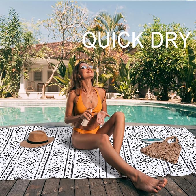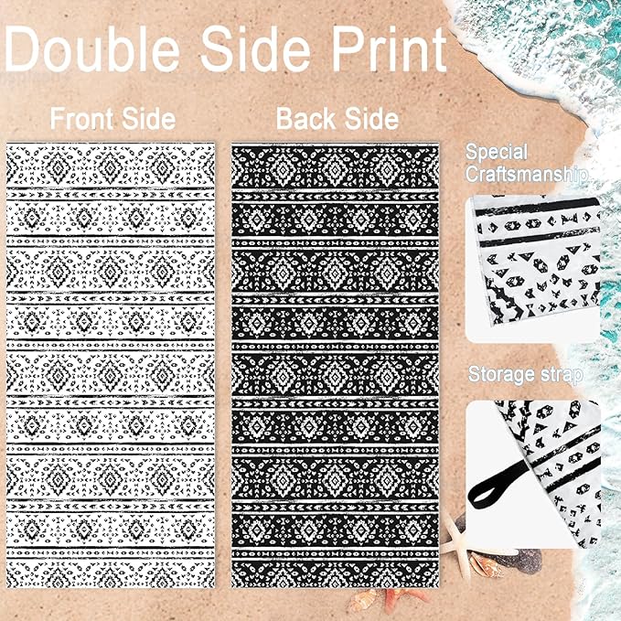 - UNIQUE DESIGN - Black and white boho pattern on the both side. Our beach towel pattern is original, it's absolutely unique. This printed towel is professionally fading tested, safe, soft and skin-friendly.