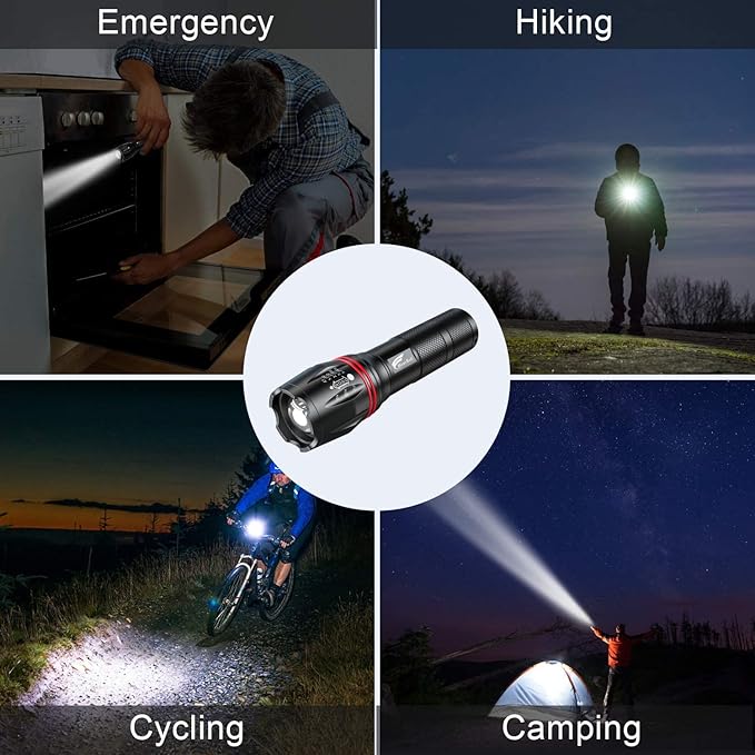 - Five Modes & Zoomable Focus: This led flashlights high lumens with five adjustable modes high/medium/low/strobe/SOS mode. The flashlight's adjustable focus allows you to zoom in for intense spotlighting or zoom out for a wider beam that can cover a larger area