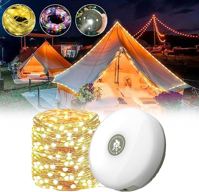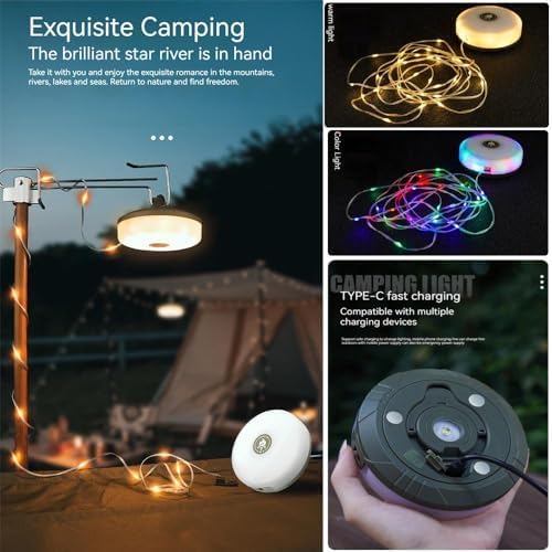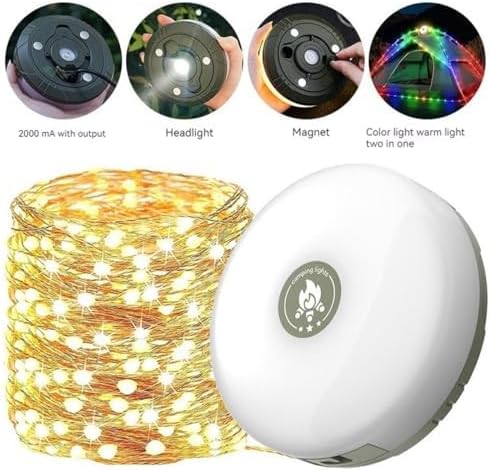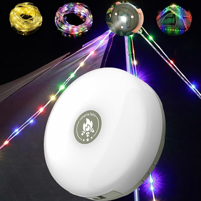 - 💡 【3 in 1 Multifunctional Camping Light】This updated 3 In 1 Camping lamp has versatile functions, you can us it as a camping light, a hanging camping lamp,warm white or colorful string lights or a power bank. You can enjoy the warmth and romance of 32.8ft camping string lights, creating a cozy atmosphere reminiscent of scattered stars. An essential for camping adventures or Indoor/Outdoor Decoration.