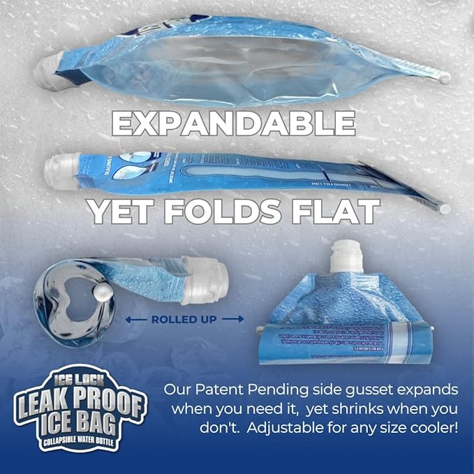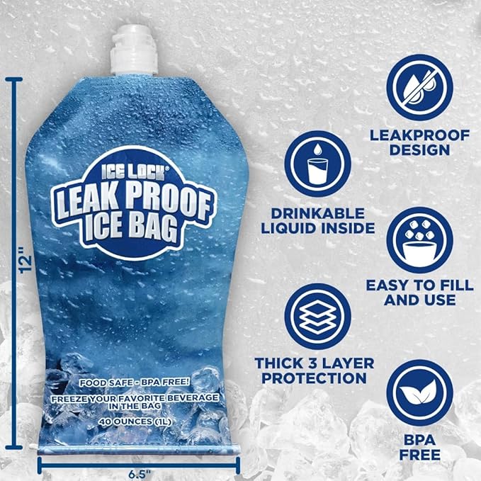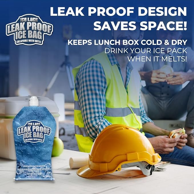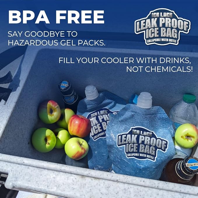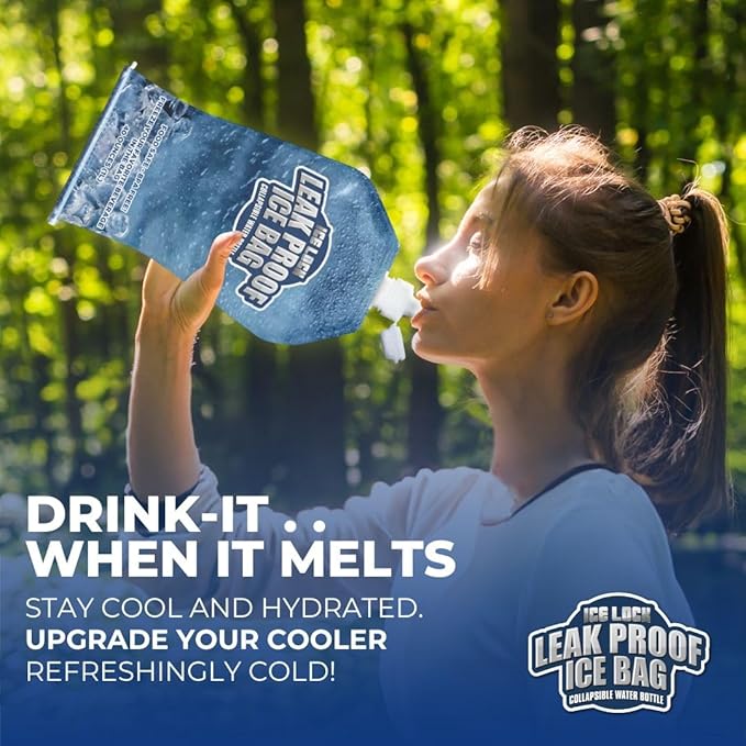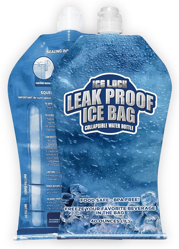 - FED UP WITH THE MESS FROM LEAKY ICE PACKS? Discover the revolution in cooling with our leak proof ice bag (portable water bottle for traveling). Meticulously crafted soft water bottles, our waterproof ice bags for coolers are guaranteed to last for many uses. Gone are the days of soggy sandwiches, just use our REUSABLE ICE BAG. Our advanced sealing mechanism ensures not just zero leaks but also a hassle-free experience. No more fumbling around trying to seal your water tight ice bag for cooler.
