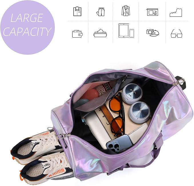 Yaopeing Gym Bag with Shoes Compartment,Sports Duffle Bag for Girls,Waterproof Travel Gym Tote Bags for Women,Purple