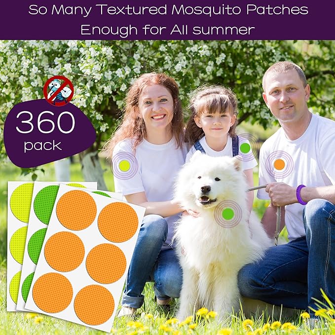 360 Pack Mosquito Stickers with 5 Pack Mosquito Bracelets for Kids and Adults - Natural Deet Free Citronella Mosquito Patches for Indoor Outdoor Traveling Camping Hiking Fishing