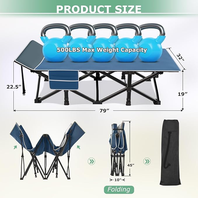 - 【Widening Size】Compared with other 's size of 75"*28"*14", Suteck oversized camping folding cot, with unfolded size: 79"*32"*19", mat size: 79"*31.5"*4" ,Folding size: 45"*10", is very easy carrying and storage. The widening design of our portable folding bed will upgrade your comfort experience