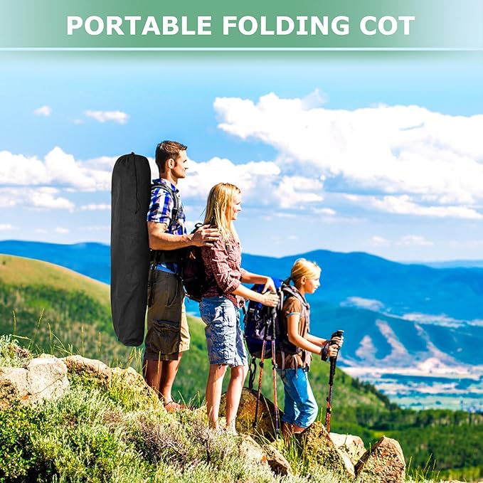 - 【Built-in Pillow Design】The headboard of our cot is a slanted design with built-in pillows, no need for extra pillows. The slight incline is ergonomically designed to ensure no more back, neck or shoulder pain in sleep! The mattress is also soft and thicker, so this is a very comfortable folding camping cot