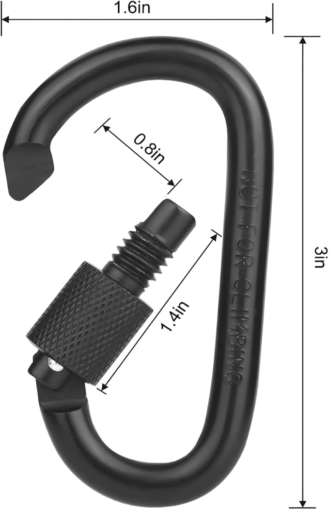 - The Carabiner Clip is Crafted from high-quality Aluminum Alloy, it is LIGHTWEIGHT & COMPACT, it is robust and reliable, however, Please note that these carabiners are not designed to meet climbing standards and should NOT be used for climbing or any life-threatening activities. This durable, heavy-duty clip is perfect for a variety of activities, including hiking, camping, hanging hammocks, keychains, dog leashes, gym, backpacking, and more.