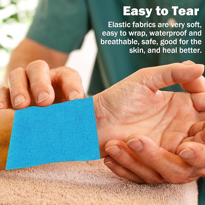 - Cohesive bandages are easily torn without scissors, simply hand tear and wrap your wrists, fingers, ankle, back, knee and other body areas.Elastic bandages that are strong and provide excellent support.They will adhere very well to themselfs but poorly to other surfaces such as skin or hair making it pain-free to pull them off and change bandages.