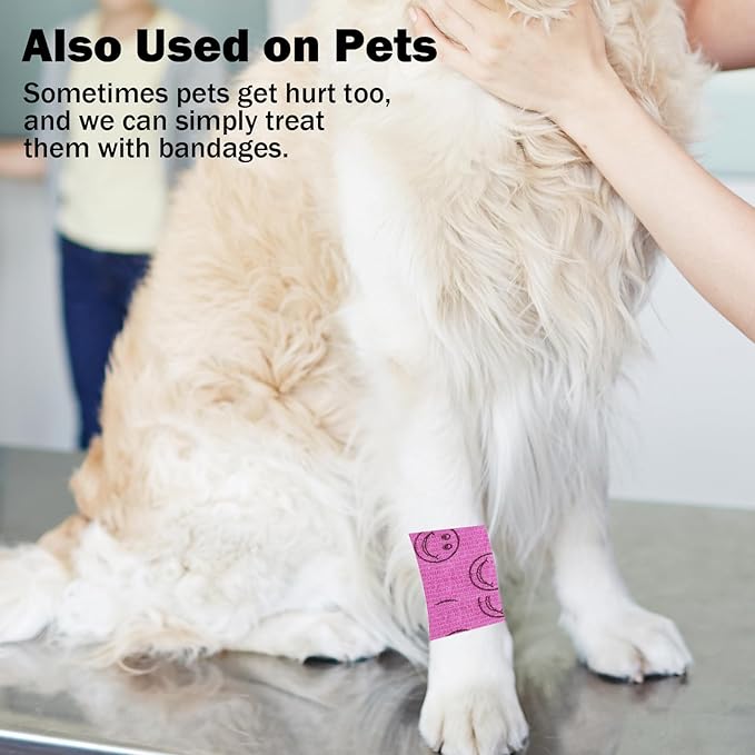 First Aid Bandages Cohesive Wrap Adhesive Self Adherent Tape Colorful (Pink Smile, 2-Inch)