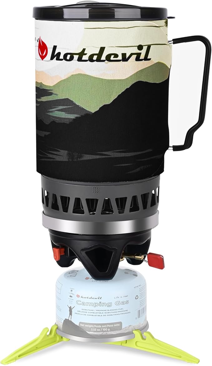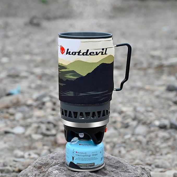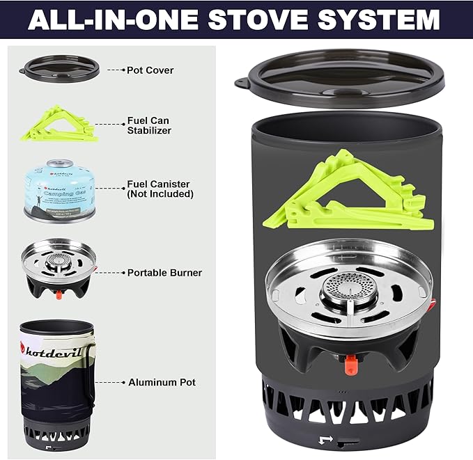 - Lightweight and Compatible: This backpacking stove works with international standard fitting (EN417 7/16’’). You can pack all accessories into this aluminum cooking pot. Easy to pack up, weighs only 16.6 oz, the portable camping stove can be a necessity for easy travel. Whatever you are preparing for boiling coffee, soup or water, it meets all your need.