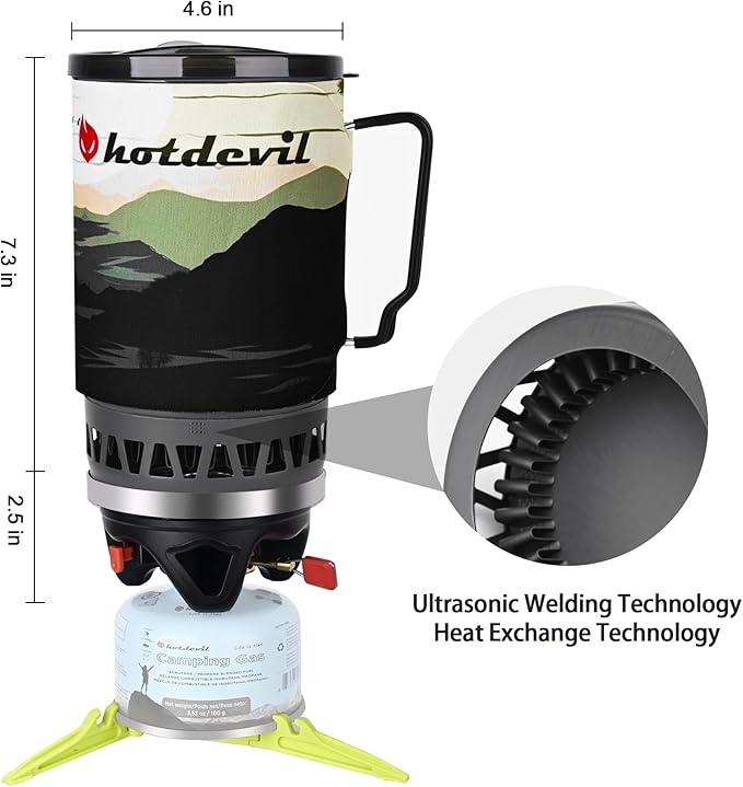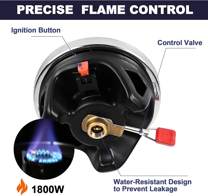 - High Efficiency: Boil 0.5L litre water in a lightning 2 minutes with half the fuel consumption of traditional systems. Output power: 1.8KW. Advanced windproof technology and heat exchange technology, not only minimize the impact of wind, but also maximize the efficiency. Even at extreme altitudes or cold areas, consistent performance can also be guaranteed.