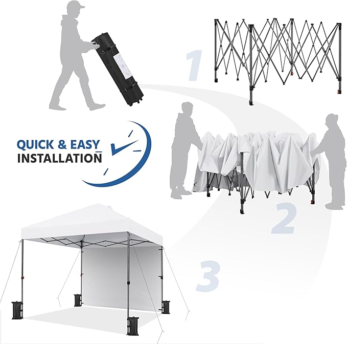 - Additional Sidewall For More Protection: The sidewall of this instant outdoor canopy is coated with UPF 50+ UV protection to shield you from the sun. It also offers extra wind protection and privacy