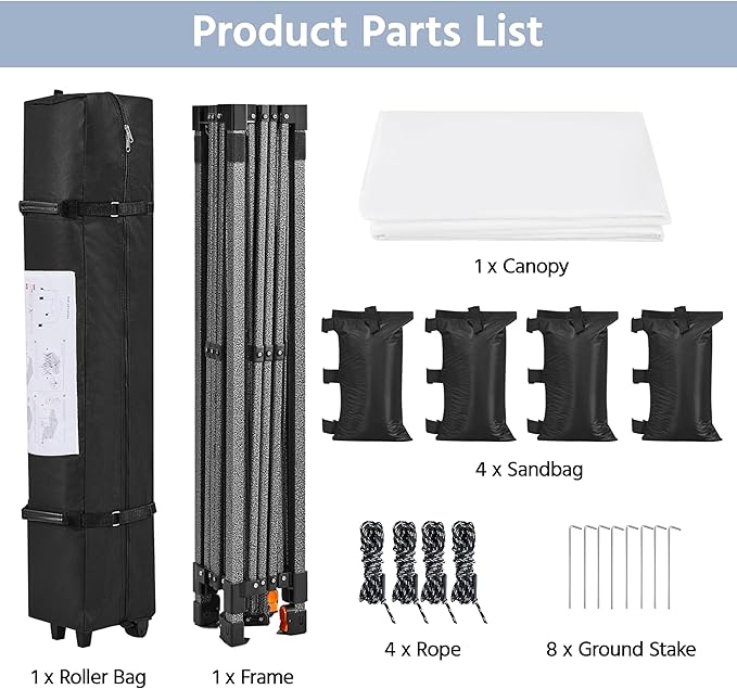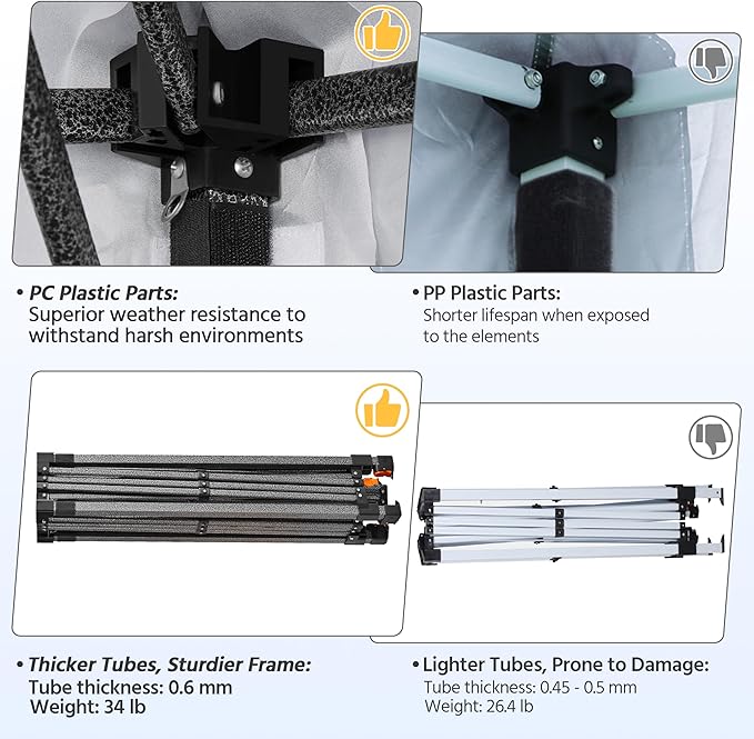 - All-weather Materials & Sturdy Construction: This pop-up canopy tent is designed with durable polyester fabric, featuring a UPF 50+ UV protective silver coating for outstanding protection against the elements. Its solid metal frame and strong polycarbonate plastic parts ensure overall stability and robustness