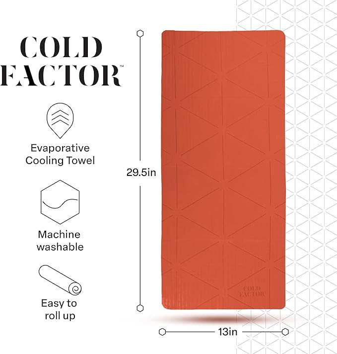 - Keeps you cool for up to 5 hours - Designed to keep you cool for longer than other PVA cooling towels, Cold Factor partnered with leading experts to develop a premium version of PVA material. The secret? A meticulous embossing process that allows the towel to absorb more water and maximizes the cooling duration by up 25% longer than other leading brands.
