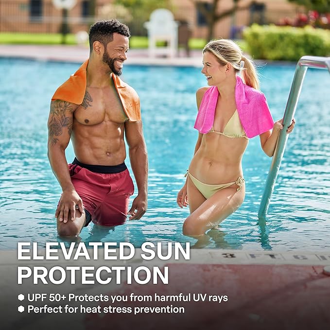 - Protection from the suns harmful UV rays - In addition to being a chill cooling towel, our cooling towels provide protection from sun damage with a UPF rating of 50+! Now whenever you’re active outdoors, you can be confident knowing you’ll be protected from harmful UV rays.