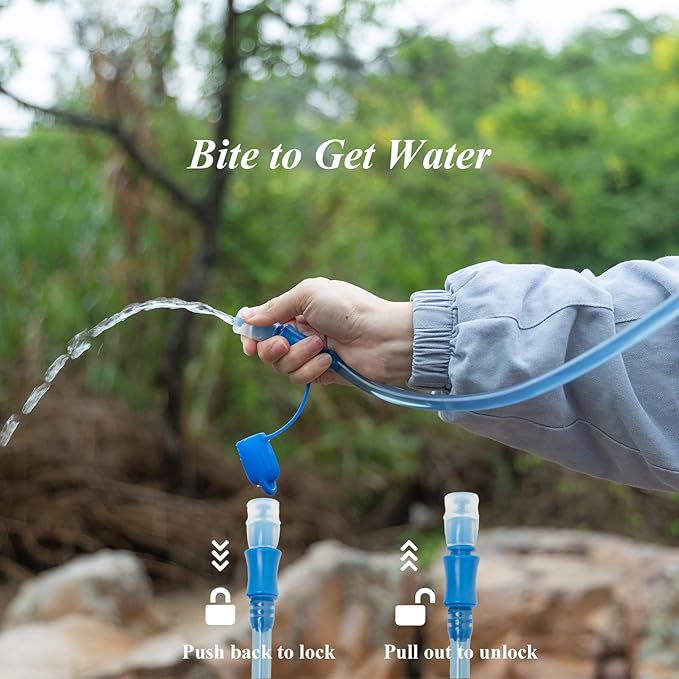 - 【High Flow】The 2L bladder mouthpiece is designed with a push/pull switch that allows you to open and close the water valve with your teeth. The dust cover helps the bladder mouthpiece stay clean when used outdoors.