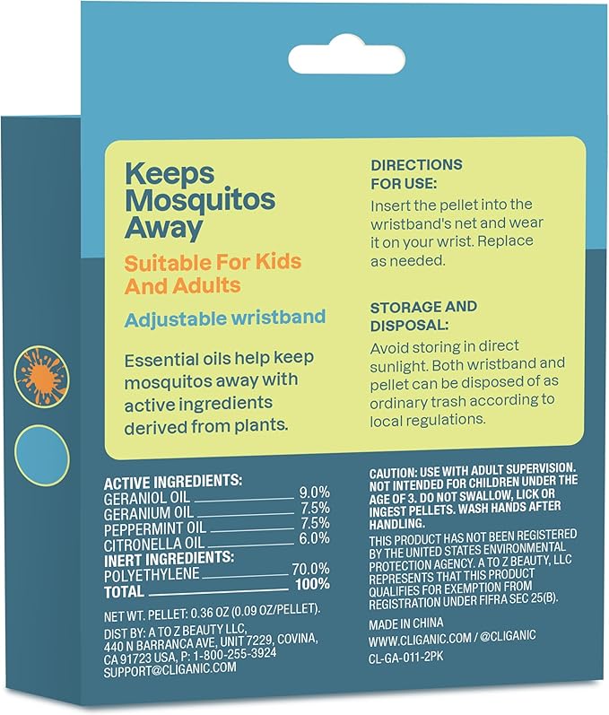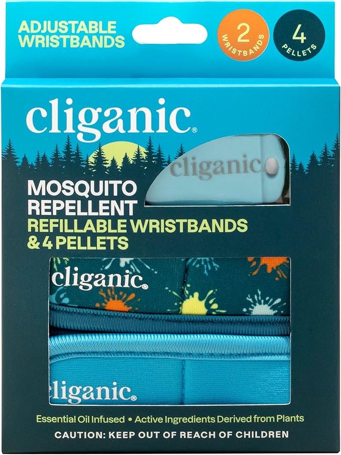 Cliganic Mosquito Repellent Pack (2 Wristbands + 4 Refill Pellets) - Adjustable, Natural DEET-Free, Essential Oil Infused