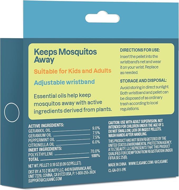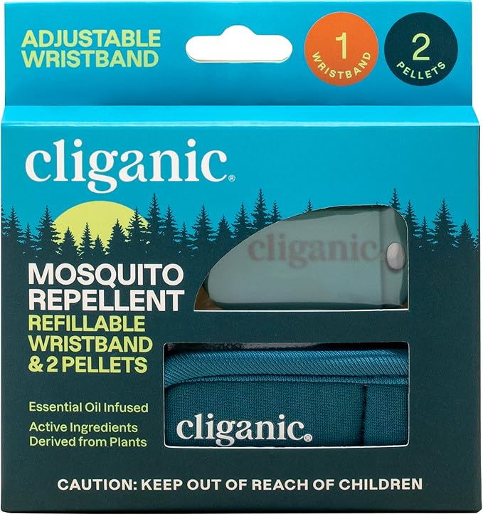 Cliganic Mosquito Repellent Pack (Wristband + 2 Refill Pellets) - Adjustable, Natural DEET-Free, Essential Oil Infused