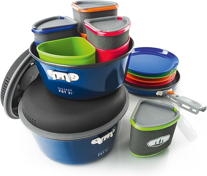 GSI Outdoors Bugaboo Camper Advanced Cookset – Ceramic Non-Stick Coated, Includes 3L & 2L Pots, 9" Fry Pan, Accessories