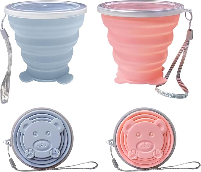 - 🥛 2 Pcs Collapsible Cup - Silicone Small Foldable Cup-Expandable Folding Drinking Cup -Reusable Portable Mugs Cup with Lids For Travel, Camping, Hiking, Survival, Holiday Vacation, Outdoor Sports Light Blue Purple