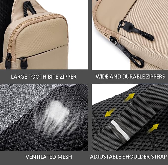 - Waterproof Nylon Fabric: This travel sling bag is made of soft, durable, and waterproof nylon fabric, preventing rainwater from soaking in; with wide and durable zippers with rope loops for easy grip, making it a reliable companion for your daily use