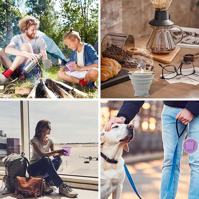 - 🥛【Multi-purpose Portable Travel Cup】Our portable travel cups are multi-purpose. The small collapsible volume, mini size and light weight let mugs cup can be used not only for home, office, indoors rest, but also for almost any occasion, especially suitable for travel, camping, hiking, climbing, holiday vacation, outdoor sports, etc. It is good choice to your kids, family and pets.