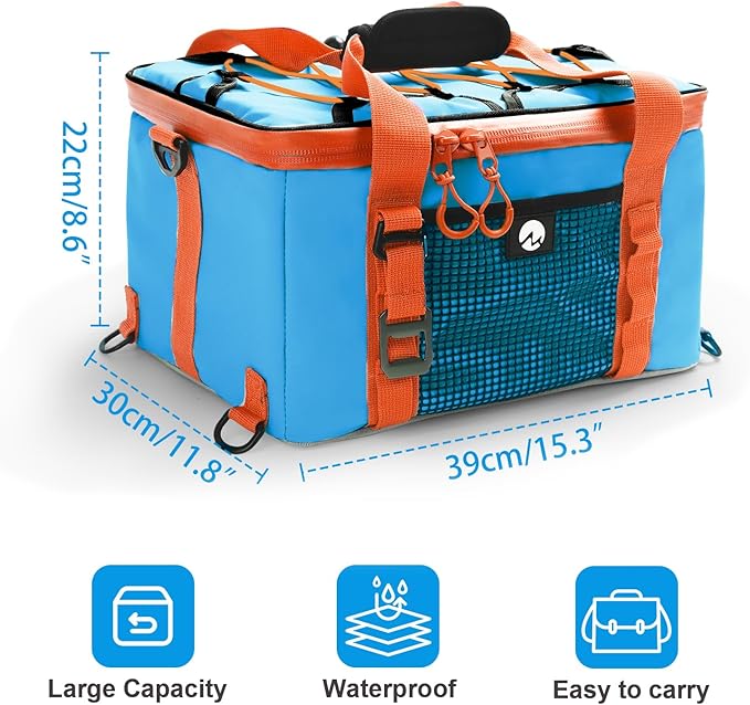 - 【Multifunctional Design】This paddle board cooler features front storage mesh pockets for keys and snacks, as well as two hanging belts to accommodate small items as needed. Additionally,it includes an adjustable elastic rope on the top of the cover, perfect for holding towels and other daily necessities.