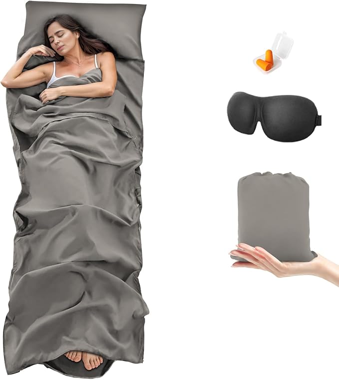 - INTEGRATED PILLOW SLEEVE:This zippered sleeping bag liner includes a handy pillow pocket where you can stuff your jacket for a cozy pillow while camping.When traveling, use the pocket to keep the hotel pillow separate for a cleaner, more hygienic sleep