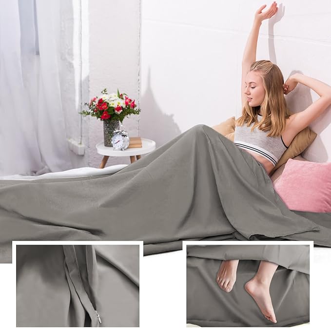 - PRACTICAL DESIGN:This lightweight travel sheet has a buckle at the top and opens on one side, making it easy to get in and out.The hidden zipper at the bottom allows for ventilation and foot movement.Unzip the bottom if you feel too warm while sleeping