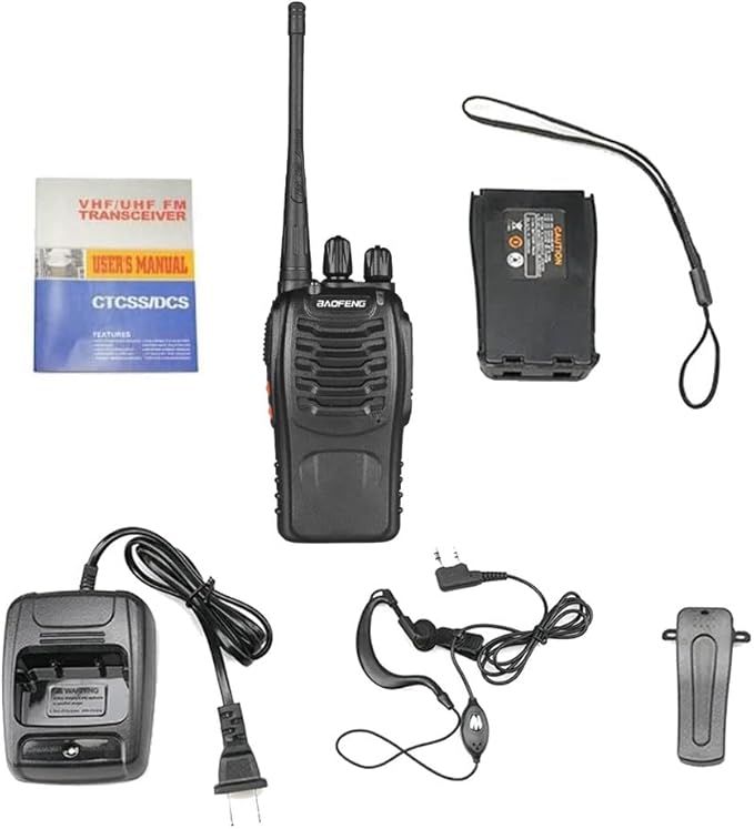 - 【What's in the box】12 x BAOFENG BF-888S walkie talkie with original antenna, 12 x 1500mAh Li-on battery, 12 x charging base, 12 x belt clip, 12 x hand strap, 12 x earpieces, 6 x user mannual, 1 x USB programming cable(In one of the boxes)