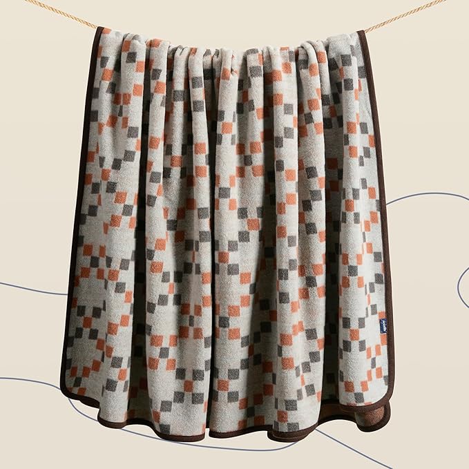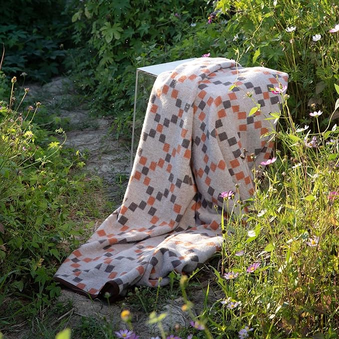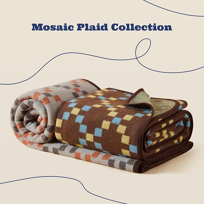 ACUSHLA Merino Wool Blanket - Soft Warm Thick Washable Large Throw Blanket for Camping Bed Couch Outdoor Travel All Weather, Mosaic Plaid Grey 79X63