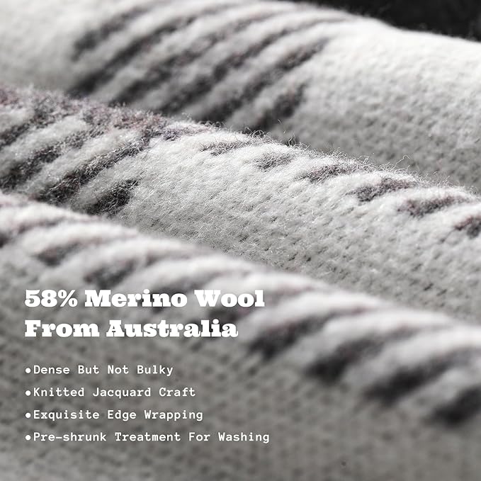 - NEW UPGRADE - ACUSHLA new series of merino wool blankets upgrade the wool content to 58% for better thermal insulation and breathability, preserving original pattern design and the dense fluff with a soft and skin-friendly touch