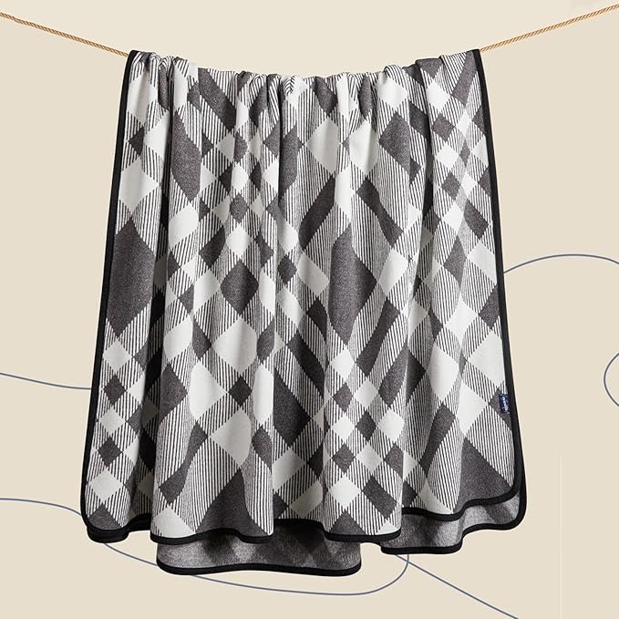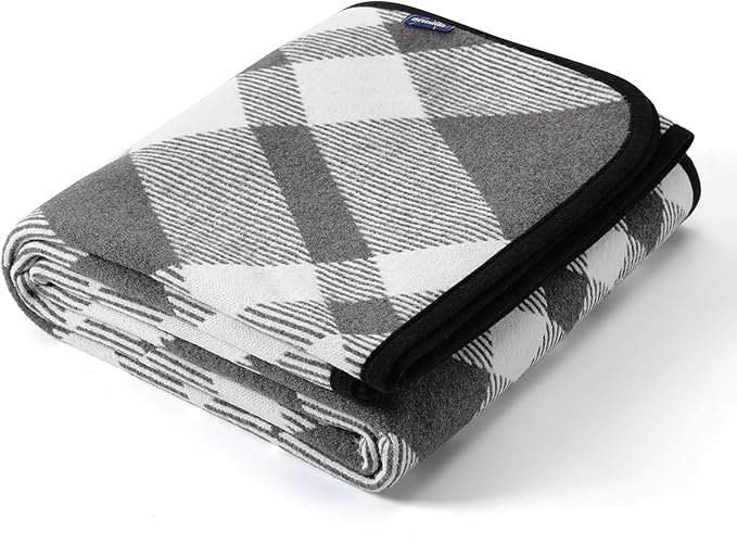 ACUSHLA Merino Wool Blanket - Soft Warm Thick Washable Large Throw Blanket for Camping Bed Couch Outdoor Travel All Weather, Scottish Plaid Grey 79X63