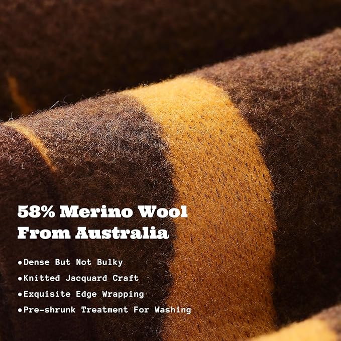 ACUSHLA Merino Wool Blanket - Soft Warm Thick Washable Large Throw Blanket for Camping Bed Couch Outdoor Travel All Weather, Rainforest Brown 79X63