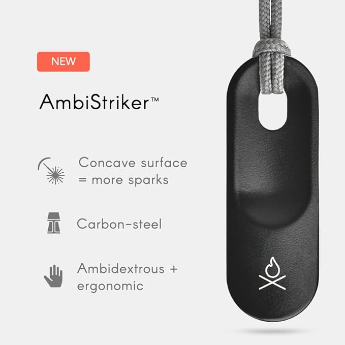 - AmbiStriker with Lanyard - The Zünden Fire Starter includes a companion striker attached to a paracord lanyard. The coated carbon-steel scraper is ergonomically designed for maximum efficiency and ambidextrous comfort, perfect for ferrocerium rods.