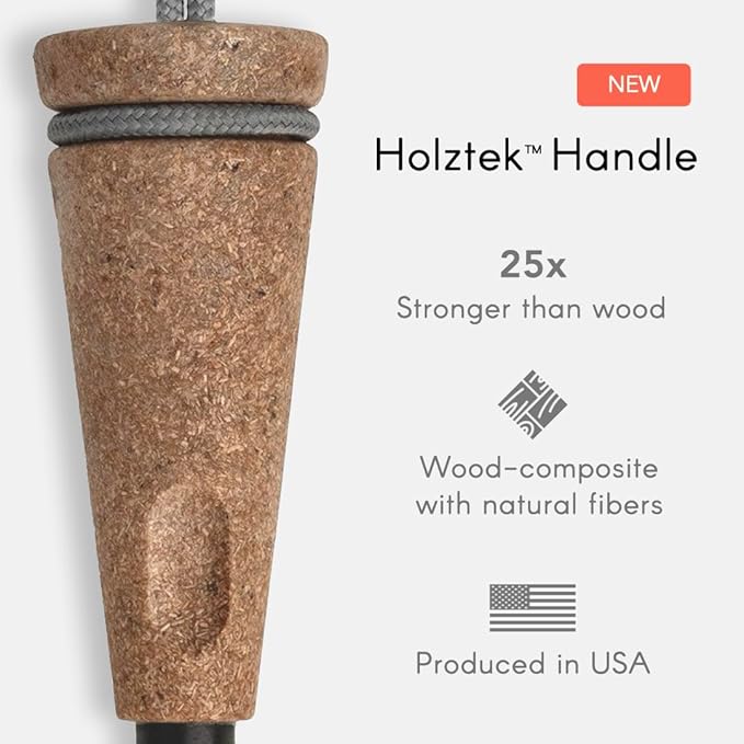 - Composite Wood Handle - The Zünden 2.0 features a Holztek wood composite handle, sustainably made with natural wood. This backpacking fire starter offers a textured grip that withstands the elements.