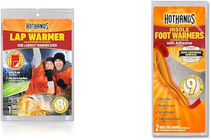 HotHands Lap Warmer, Largest Warmer 16" X 10" - Up to 8 Hours of Long Lasting Heat & Insole Foot Warmers with Adhesive - Long Lasting Safe Natural Odorless Air Activated Warmers - Up to 9 Hours