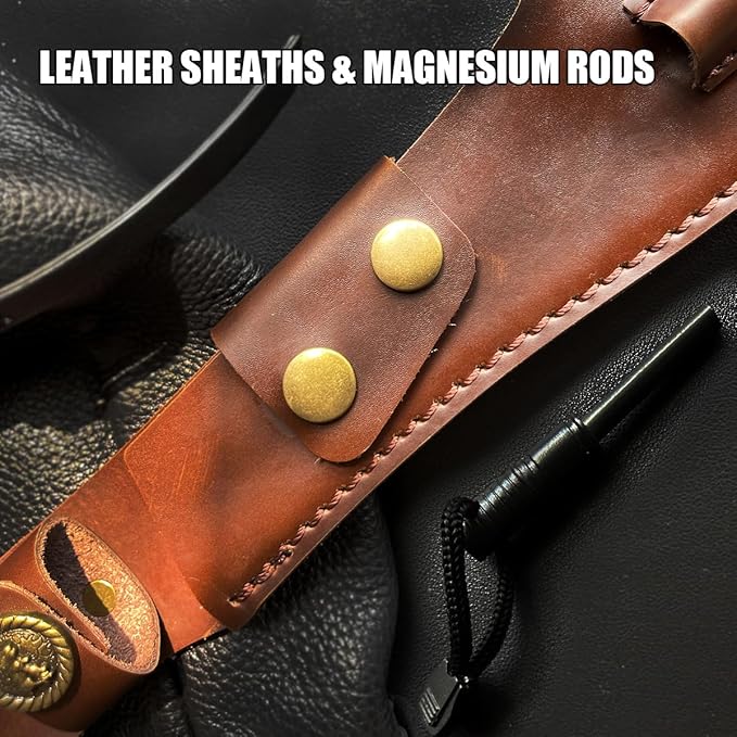 - Essential Survival Tool with Magnesium Fire Starter: Your survival in the wilderness often depends on your ability to start a fire, and that's where the included magnesium fire starter comes into play. Combined with the knife's sharp blade, this tool gives you the ability to create kindling and ignite it with ease, making it an indispensable part of your camping, hiking, or survival gear.