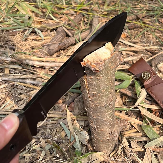 - Ergonomic Ebony Handle & Durable Leather Sheath: Comfort and control are essential when wielding a knife and this model delivers both with its ergonomic ebony handle. The smooth, contoured grip feels natural in your hand, while the leather sheath protects both you and the knife when not in use. Whether you're wielding it as a hunting knife or a bush craft tool, you'll appreciate the balance and comfort it provides.
