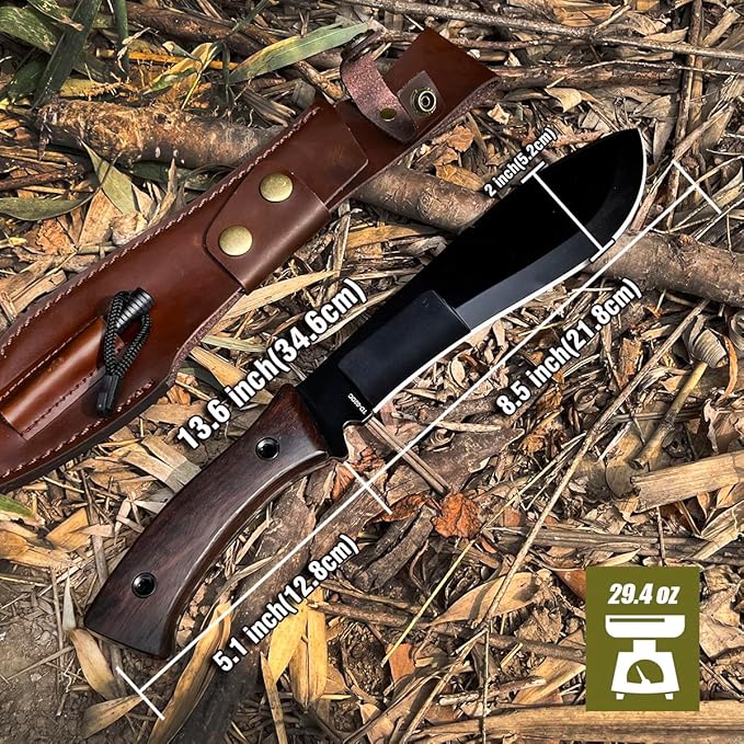 - Robust DC53 Stainless Steel Blade: The heart of this knife is its formidable 13.6-inch blade, crafted from high-quality DC53 stainless steel. Renowned for its exceptional edge retention and corrosion resistance, this material ensures that your knife remains razor-sharp, even after extensive use in harsh outdoor environments. Whether you're using it as a tactical knife for self-defense or as a camping knife for chopping kindling, the DC53 blade won't let you down.