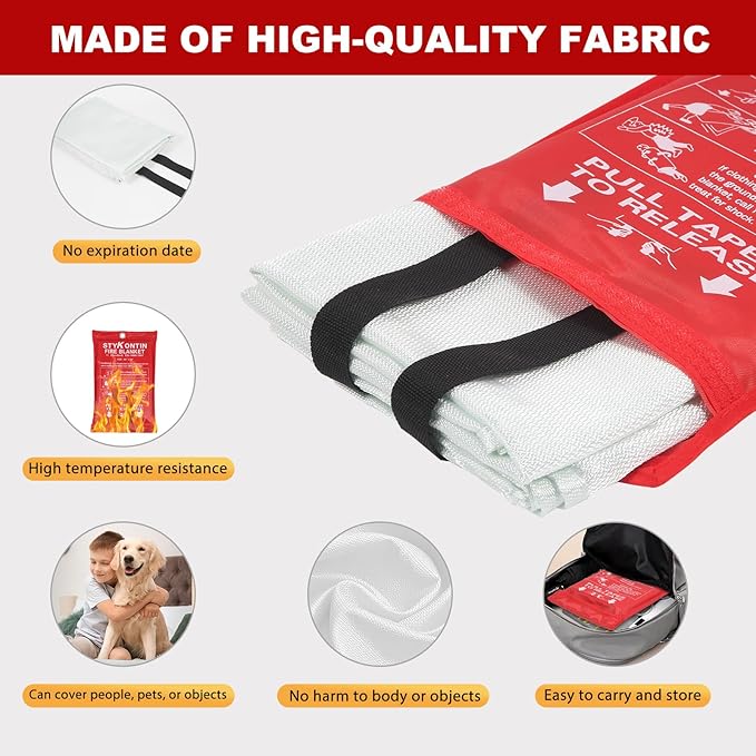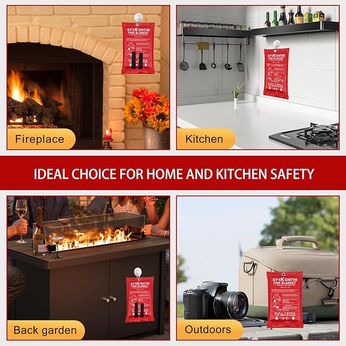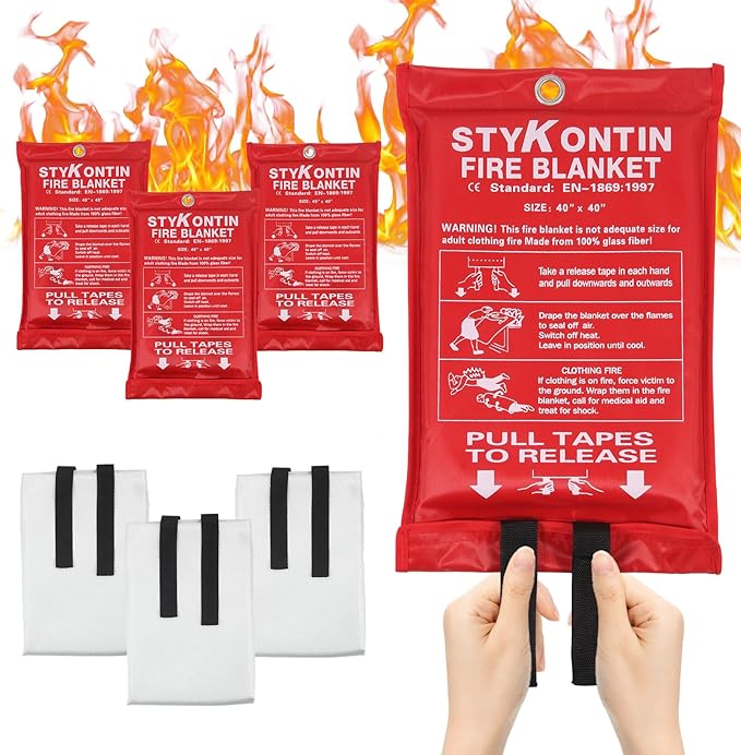 - Emergency Survival Essential: Tailored as a crucial home-safety device, these blankets are indispensable for kitchen, fireplace, grill, car, office, and camping emergencies. Each package includes 4blankets, measuring approximately 1 x 1 meter/40 x 40 inches. Unlike traditional extinguishing sprays, these blankets cut off oxygen with no mess.
