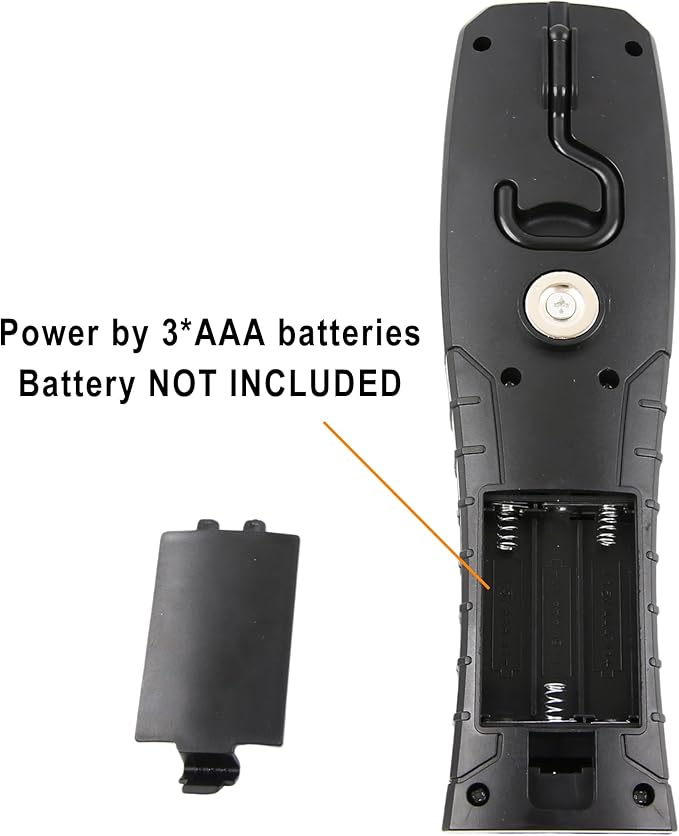- Battery-Powered Convenience: Powered by 3 AAA batteries (not included), this work light offers hassle-free operation without the need for electrical outlets or cords, ensuring you have reliable illumination wherever you go. Additionally, its magnetic base and hook provide flexible mounting options for hands-free use in various work environments.