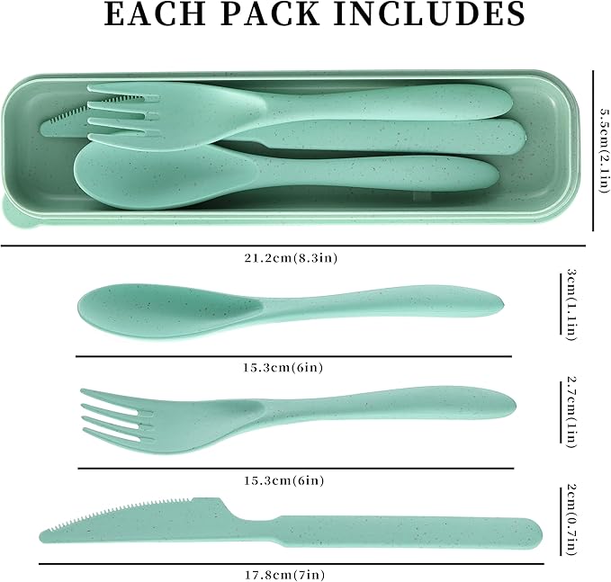 - 1. Eco-friendly Materials: Our travel utensils with case are crafted from high-quality wheat straw material, providing a sustainable alternative to traditional plastics. Wheat straw is a renewable resource, making it an eco-conscious choice for individuals looking to minimize their environmental impact. By opting for our reusable utensils set with case, you're actively reducing single-use plastic waste and promoting a greener, more sustainable planet.