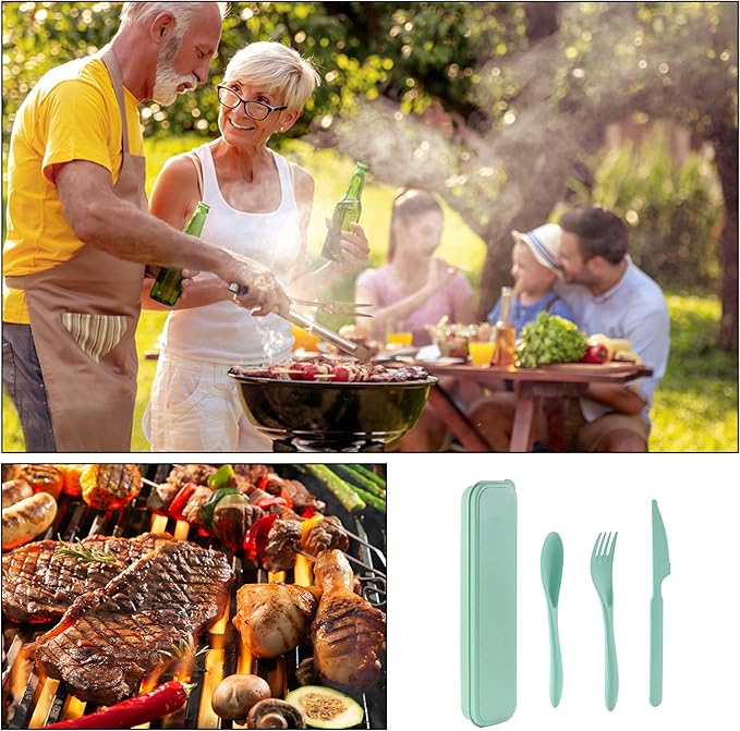 Reusable Travel Utensils Set with Case, 4 Pack Reusable Wheat Straw Portable Utensils Set with Case, Travel Utensils for Lunch, Camping, Picnic, Travel (Green, Pink, Blue, Beige)